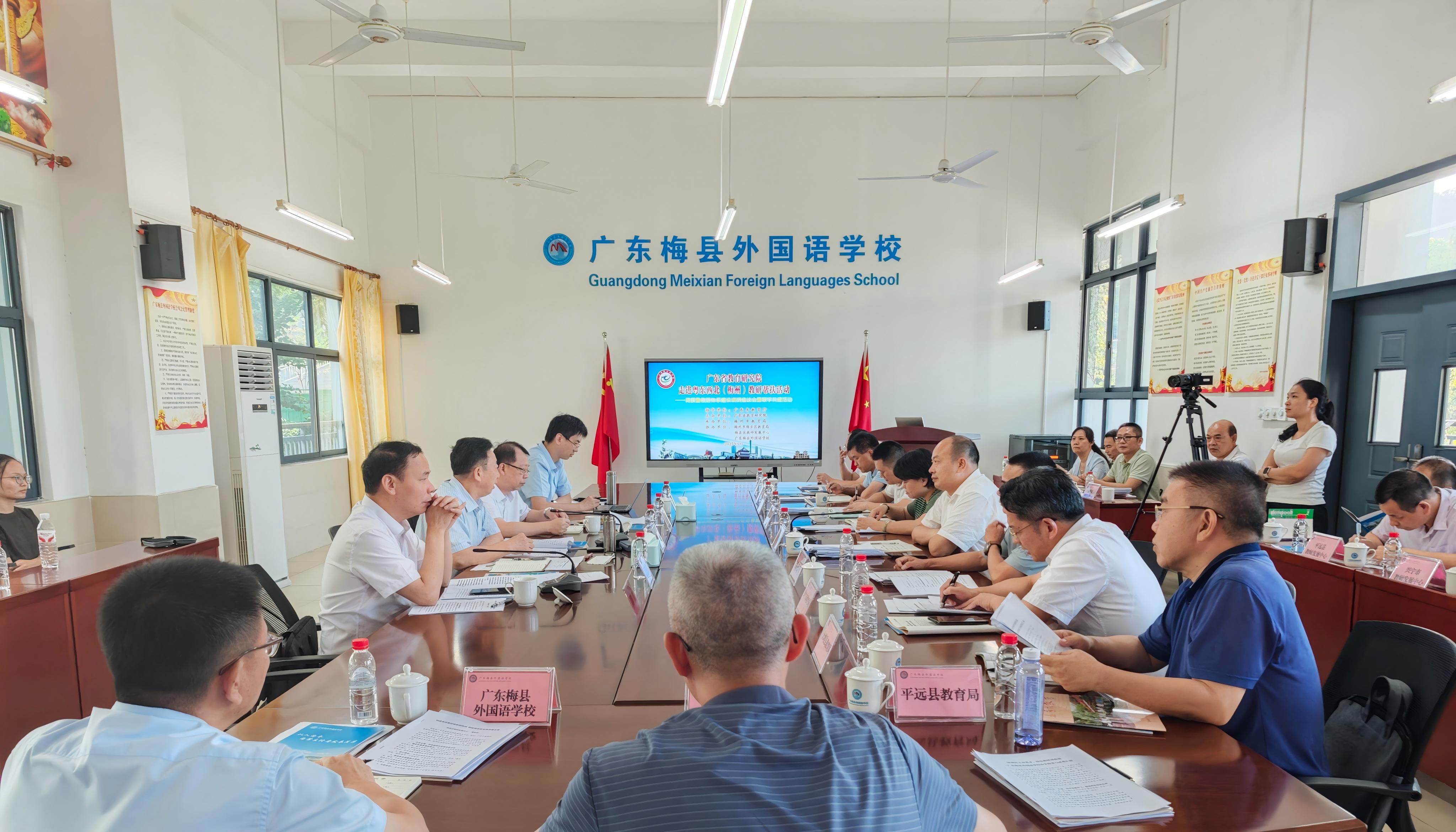 22日下午,基础教育高质量教研体系建设推进调研座谈暨联学共建活动在广东梅县外国语学校举行。省教育研究院党委书记、院长傅湘龙,党委委员、教学教材研究室党支部书记吴有昌;广州市教育研究院副院长陈坪;梅州市委教育工委副书记、教育局党组成员、副局长罗涤权,梅州市教师发展中心主任杨幼平、副主任陈启南,梅县区局党组成员、副局长杨东梅,梅州市各县(市、区)教育行政部门和教研机构负责人,广东梅县外国语学校党委书记温元年参加。