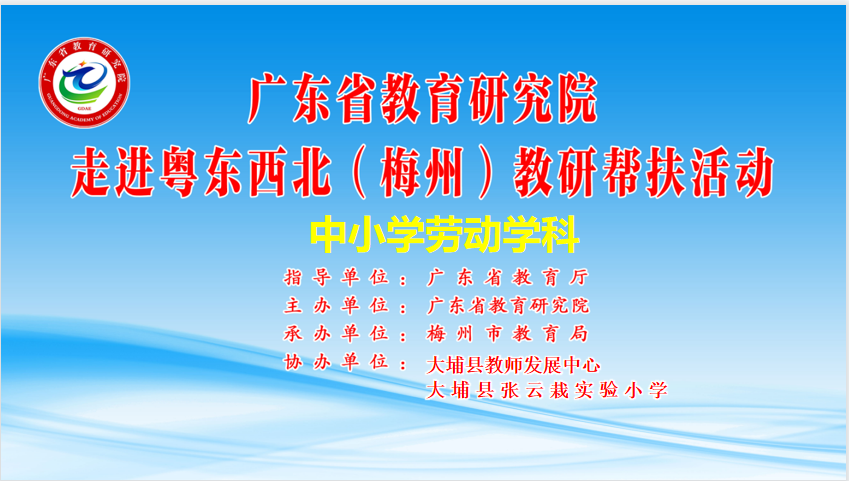 为深入贯彻“百县千镇万村高质量发展工程”部署,推动县域义务教育优质均衡发展,9月下旬,由广东省教育研究院主办的“走进粤东西北(梅州)教研帮扶活动”中小学劳动学科专场在梅州市大埔县张云栽实验小学、田家炳实验中学举行。由于台风影响,活动后半段改为线上进行。线上线下相结合的活动聚焦中小学劳动教育,通过名课例展示、专题研讨与专家讲座,为梅州地区劳动教育提质增效注入新动力。