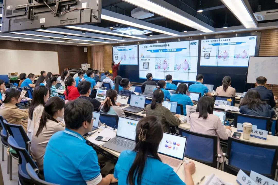 研修期间,学员们通过个人实践、小组讨论与成果展示等方式深化对人工智能教育的理解,逐步掌握 AI工具的应用,完成微课视频制作、教学智能体开发等任务,还走进华南师范大学教育人工智能研究校企合作的产学研基地,实地感受乡村智能教育、师范生智能实训、教师数字素养测评等应用场景的魅力。