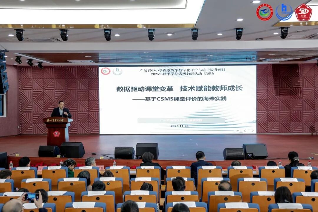 为推动教育数字化战略落地,展示区域AI课堂评价的系统性成果,11月28日,由广东省教育研究院主办、广州市海珠区教育发展研究院承办、广州市第五中学协办的“数智赋能,精准研训——2025年广东省中小学课堂教学数字化评价与质量提升项目教研活动(海珠专场)”在广州市第五中学举行。本次活动由广东省教育研究院主办,广州市海珠区教育发展研究院承办,广州市第五中学协办。活动邀请专家学者及一线教师代表,分享海珠区在AI课堂评价的探索成果与前瞻思考,共同见证智慧教育的“海珠样本”。